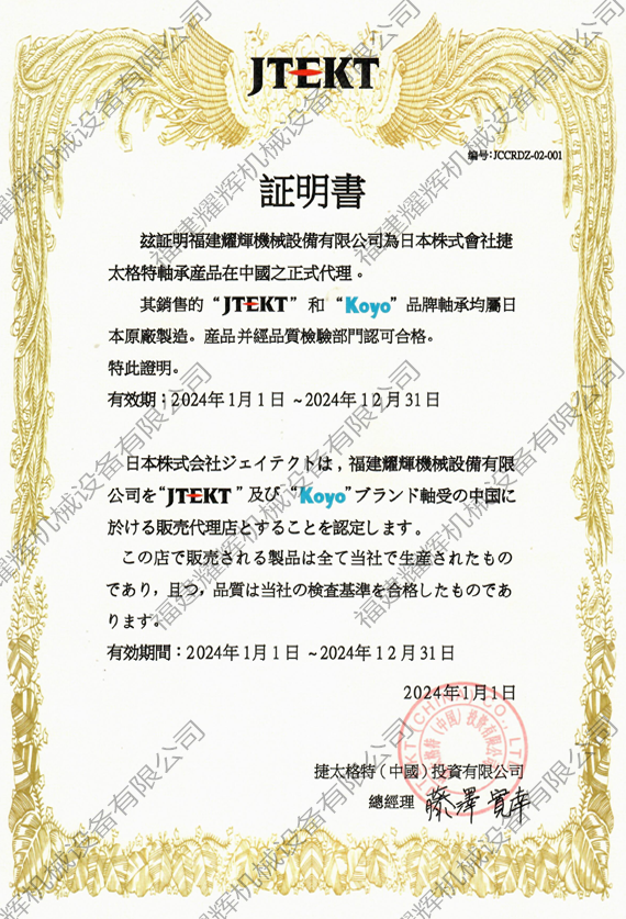 2024年koyo授權(quán)證書