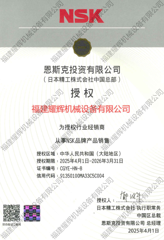 2025年NSK授權(quán)證書
